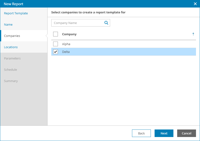 If you select more than one company at this step, Veeam Availability Console will create a separate report configuration for each selected company.