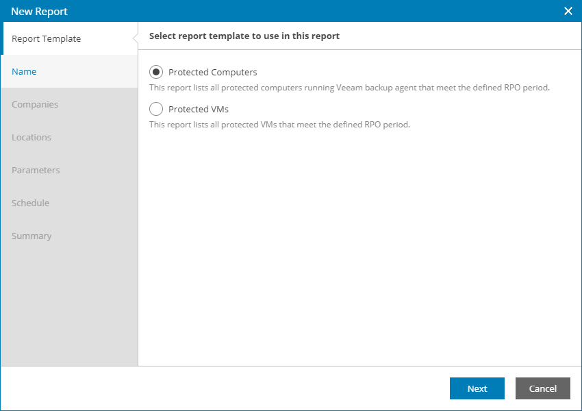 Veeam Availability Console will launch the New Report wizard.