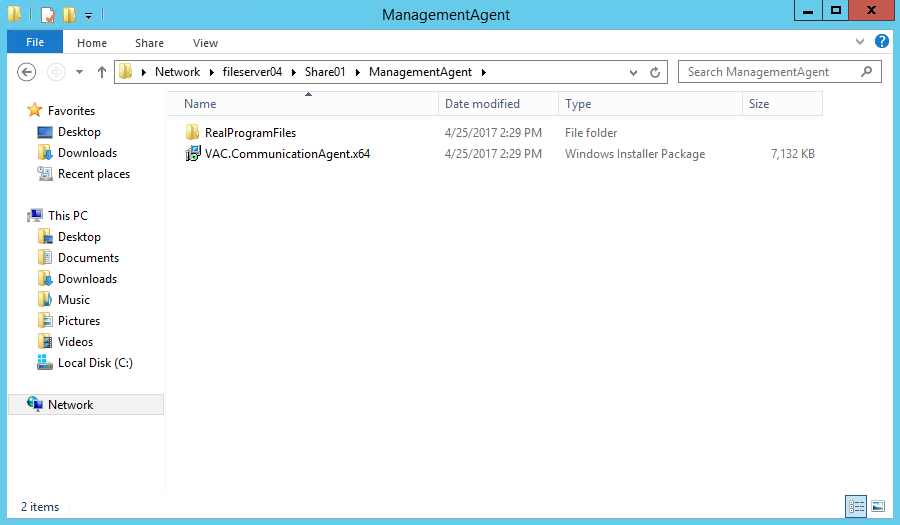 - Perform installation of the management agent in the administrator mode to unpack the content of the setup file: