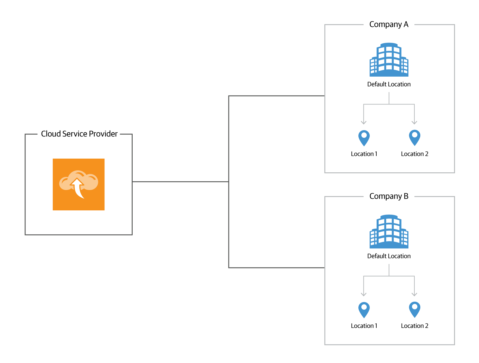 You can use locations to keep track of the type and amount of backup services and cloud resources consumed by different offices or business units of a company. If you configure multiple locations for a company, invoices will provide a breakdown of costs by location. Thus, you can track the cost of backup services provided for specific locations.