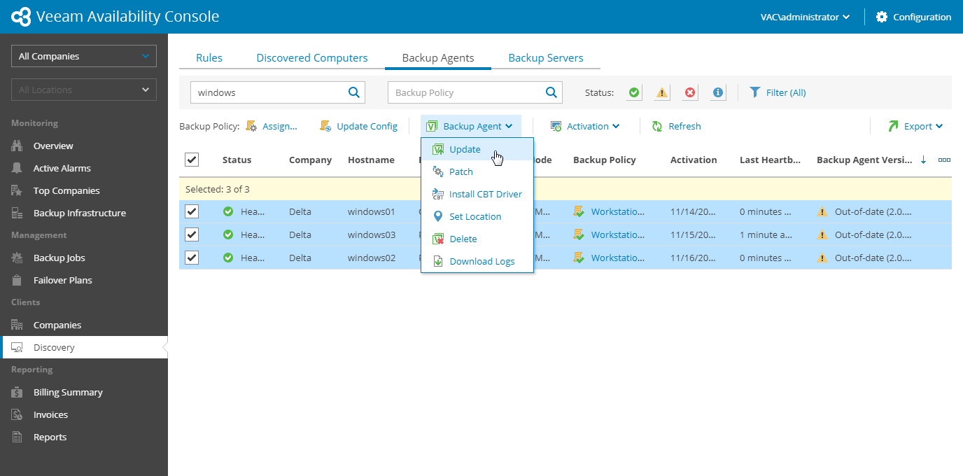 Updating Veeam Backup Agents Installed with Discovery Rules
