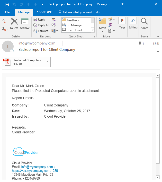 The report will be sent at the email address that you specified in the Company Info settings for the client company at step 2.