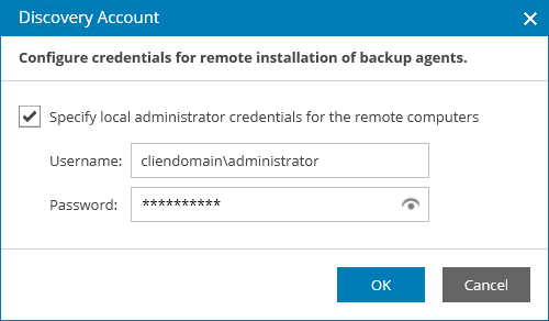 The account must have local Administrator permissions on client computers where you plan to install Veeam backup agents.