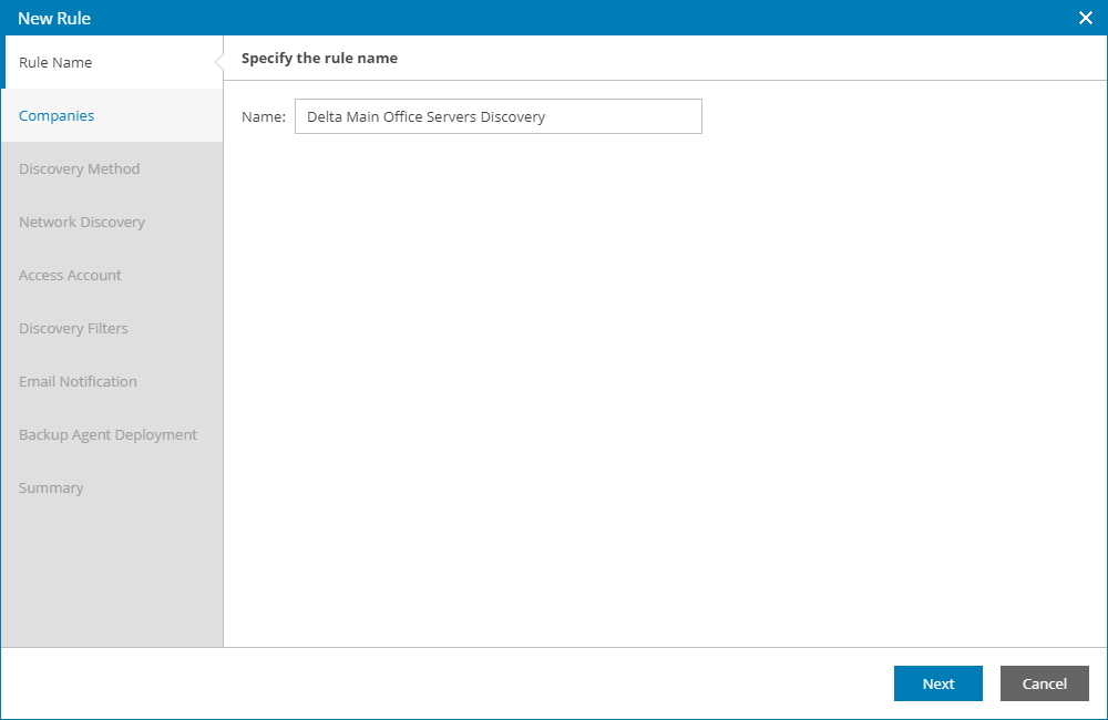 - At the Rule Name step of the wizard, specify a discovery rule name.
