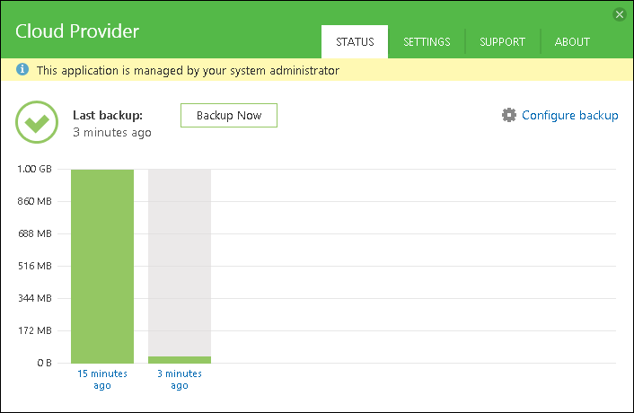 In the read-only access mode, Veeam backup agents can be managed only in Veeam Availability Console. The Veeam backup agent Control Panel section displays a notification saying that the product is managed by a system administrator.