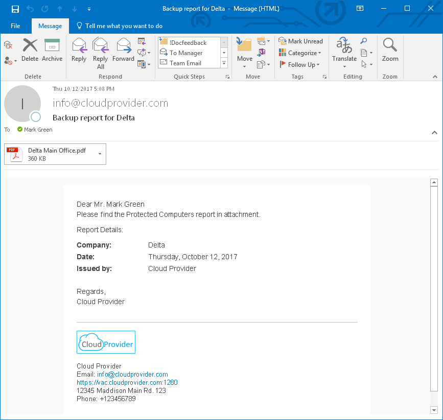 If you specify a schedule in the backup report configuration, Veeam Availability Console will automatically send to the Company Owner report notifications with generated backup reports.