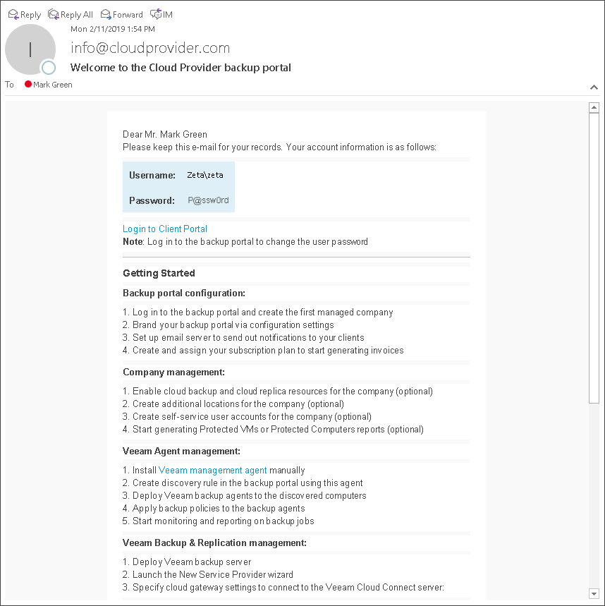 The following image illustrates how a welcome email message looks like.