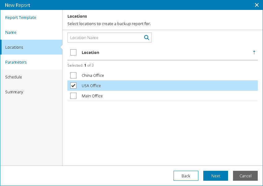 By choosing a location you can limit the scope of the report: only computers or VMs belonging to the chosen locations will be included in the report.