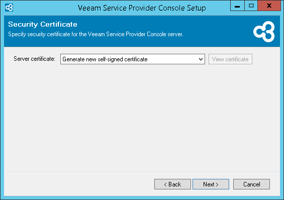 For details on security recommendations and certificates, see section Installing Security Certificates of the Veeam Service Provider Console Guide for Service Providers.