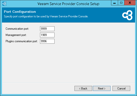 - In the Communication port field, type a number of the port on the Veeam Service Provider Console machine that will be used to collect data from cloud gateways and Veeam Cloud Connect server.