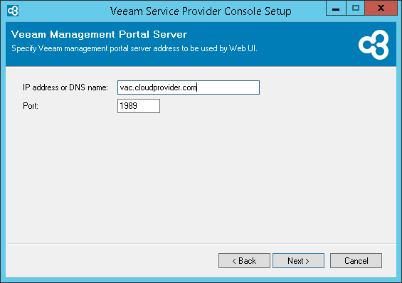 - In the Website and RESTful API v3 port field, type a number of the port that will be used to access the Veeam Service Provider Console website through a web browser and to interact with the Veeam Service Provider Console RESTful API v3.