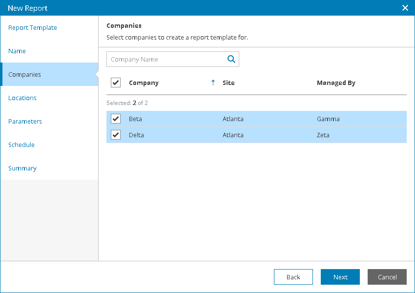 If you select more than one company at this step, Veeam Service Provider Console will create a separate report configuration for each selected company.