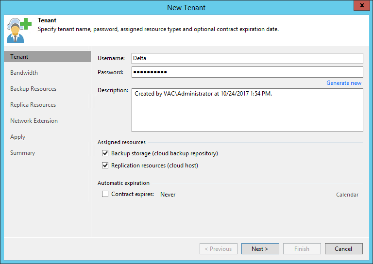 For details, see section Registering Tenant Accounts of the Veeam Cloud Connect Administrator Guide.