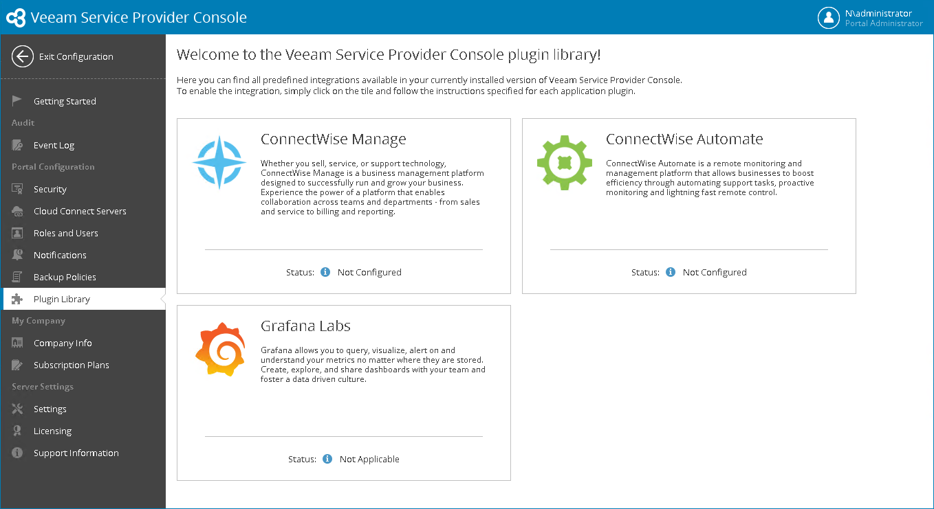 Configure ConnectWise Manage plugin connection in Veeam Service Provider Console:
