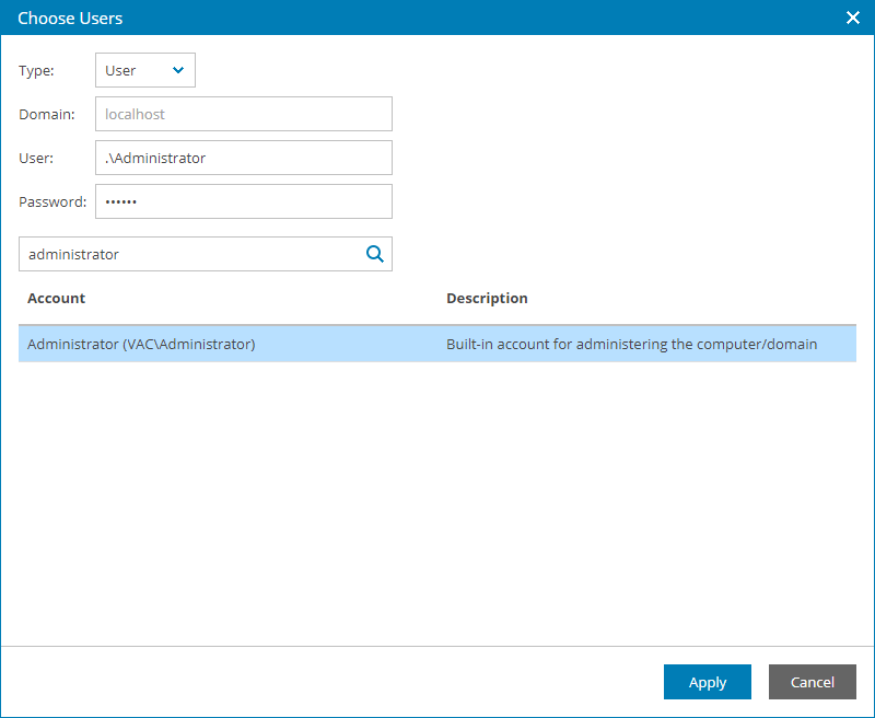 By default, Veeam Service Provider Console searches users and groups on the machine hosting Veeam Service Provider Console. If you installed Veeam Service Provider Console using the distributed deployment scenario, this will be a machine on which the Veeam Service Provider Console Server component runs.