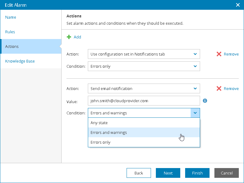 Veeam Service Provider Console will launch the Edit Alarm wizard.