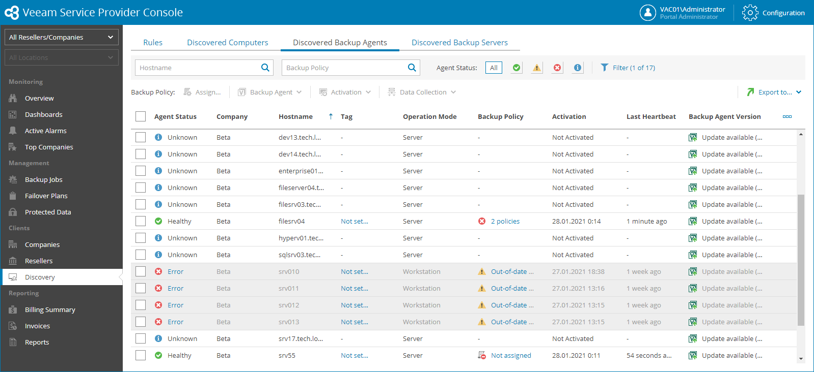 For example, you may need to perform the update procedure if computers in the client infrastructure already have Veeam backup agents installed, but the software version is not supported by Veeam Service Provider Console. To be able to manage Veeam backup agents in Veeam Service Provider Console, you must update the software to the supported version.