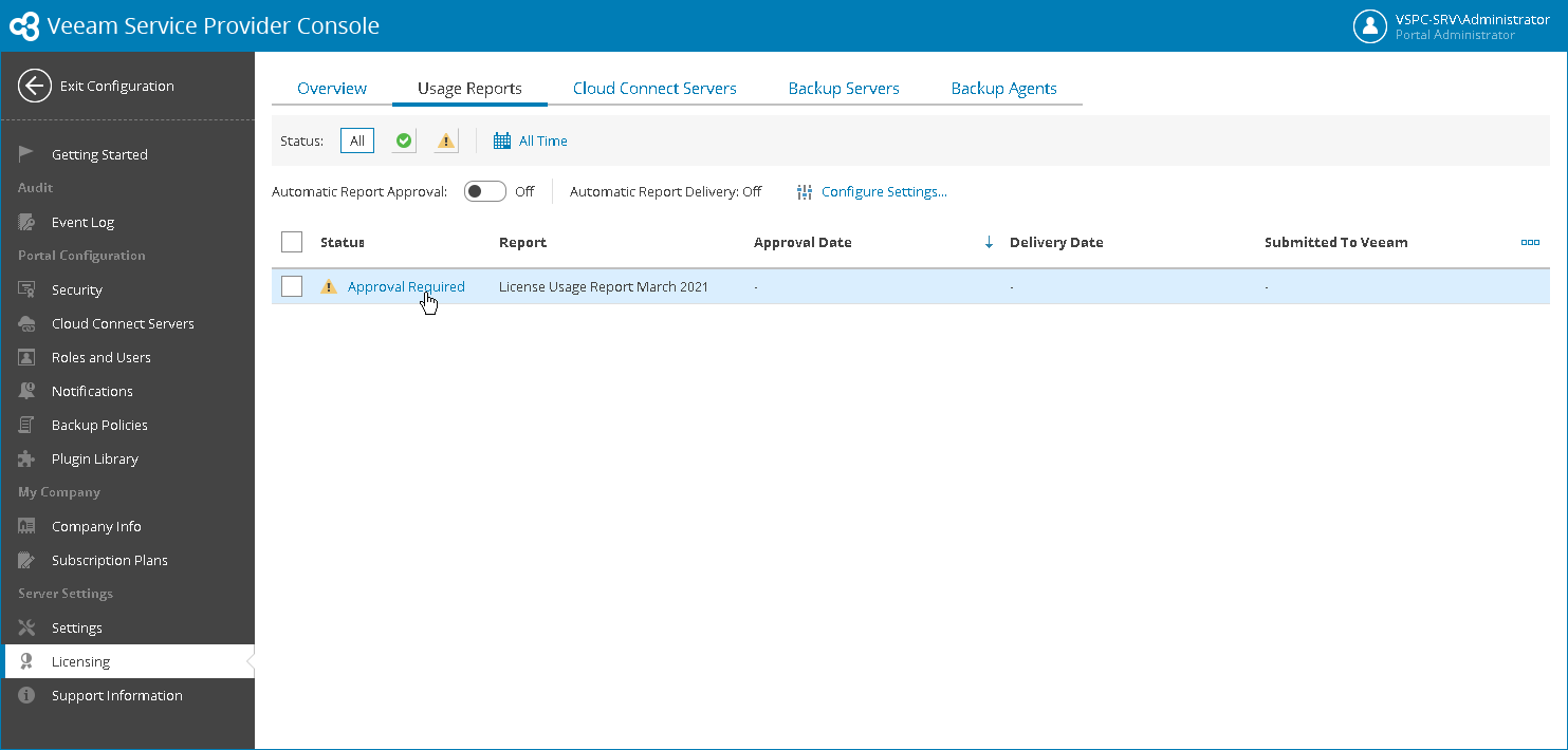 - Navigate the generated license usage report and click the Approval Required link.