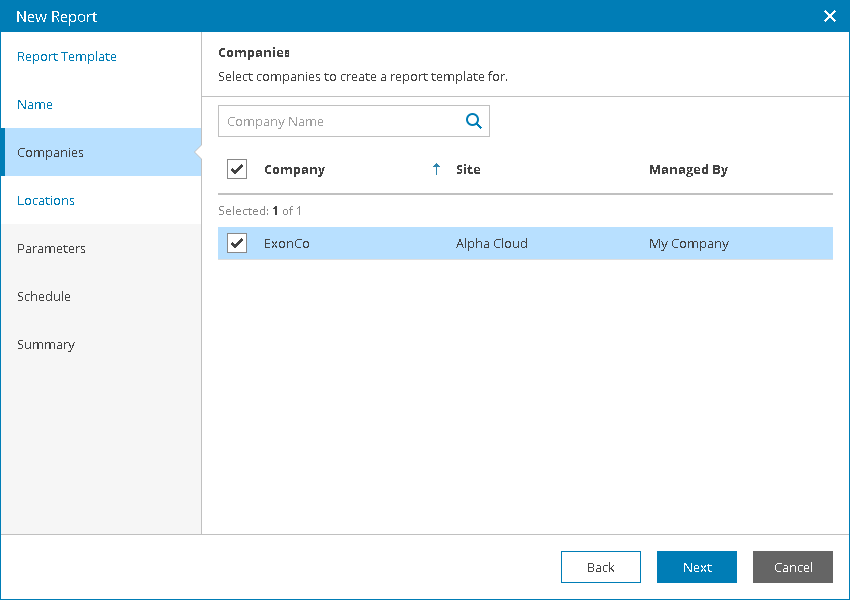 - At the Companies step of the wizard, select the client company you configured at the Register Account for Managed Company step.