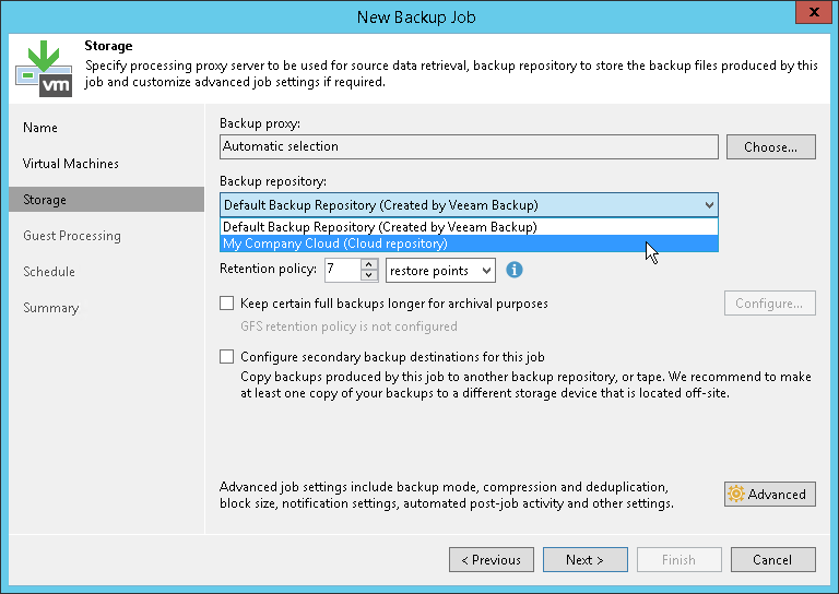 Pointing Veeam Backup & Replication Job to Cloud Repository