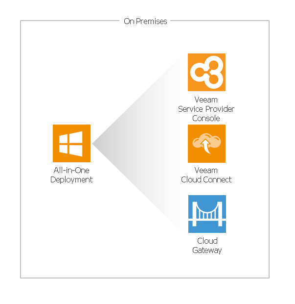 To follow scenarios described in this guide, you must deploy Veeam Service Provider Console. For trial purposes, you can use 'all-in-one' on premise deployment, with all Veeam Service Provider Console components installed on the same machine. The machine must run a latest 64-bit version of Microsoft Windows, and can be physical or virtual.