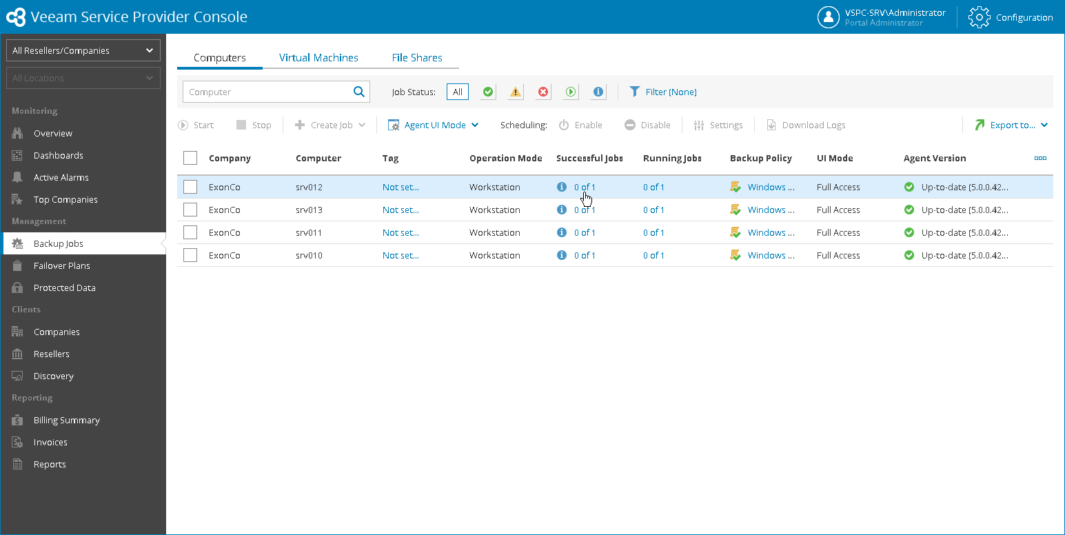 For details on working with agent backup jobs, see section Managing Veeam Backup Agent Jobs of the Guide for Service Providers.