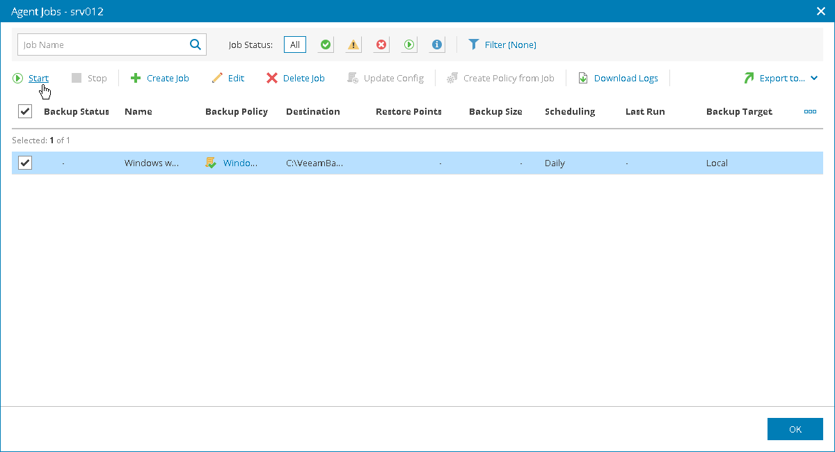 Step 4. Run Veeam Backup Agent Jobs