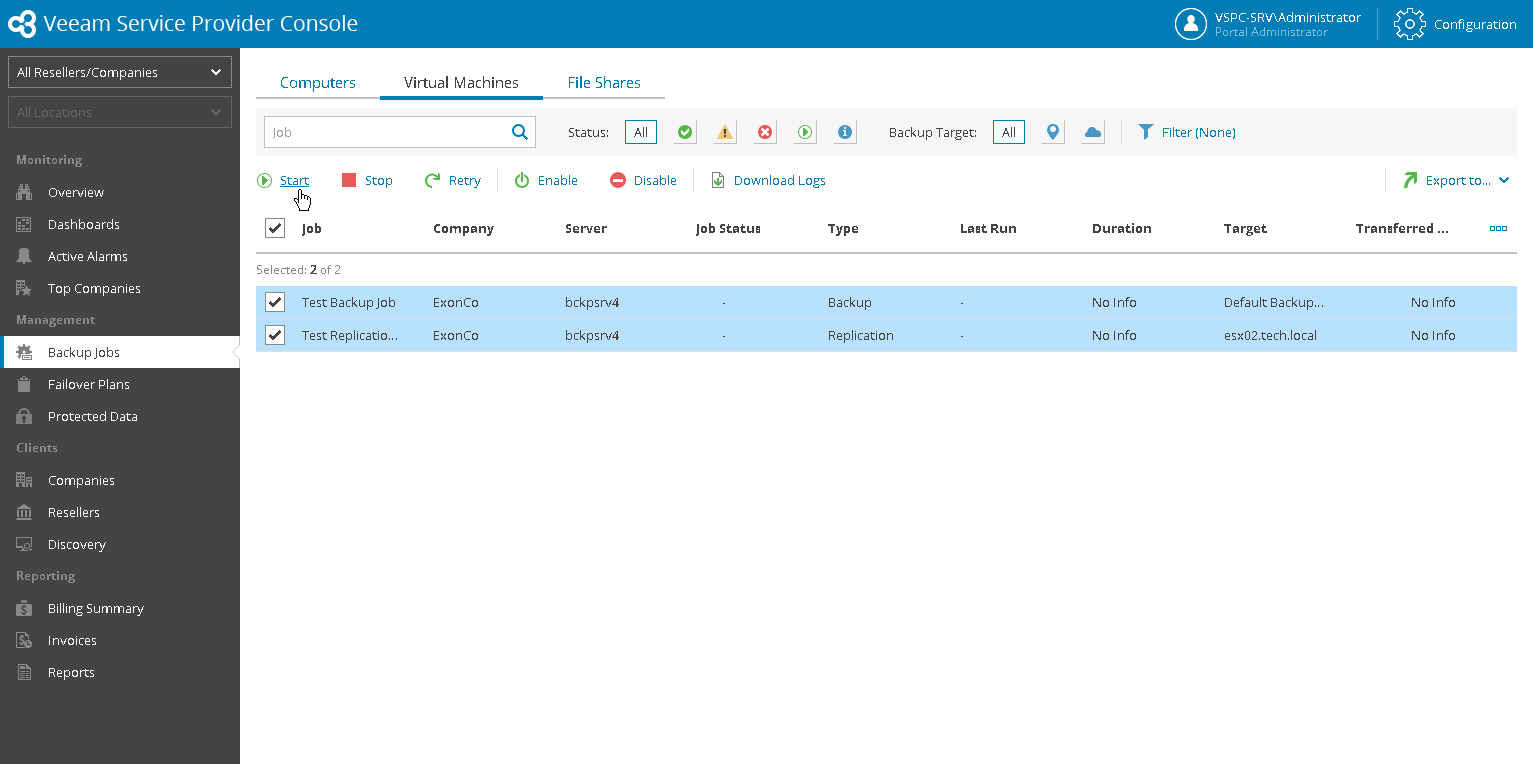 In Veeam Service Provider Console, you can manage jobs configured on client Veeam Backup & Replication servers.