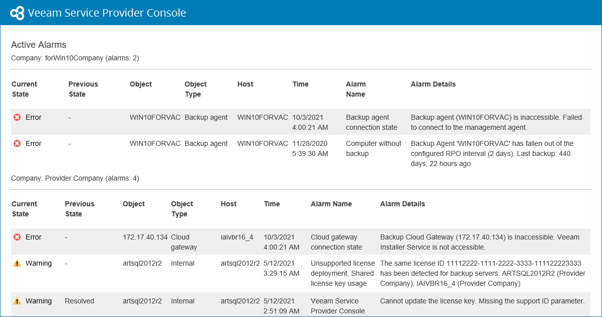 - Veeam Service Provider Console can send summary daily email notifications with information about all alarms triggered for the past 24 hours.