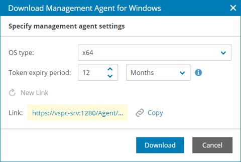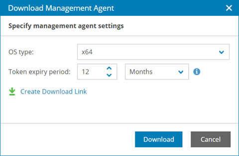Note that management agent setup files provided in default welcome email have expiry period of 2 days. If you want company users to download management agents with custom configuration, you can create a download link for a preconfigured agent.