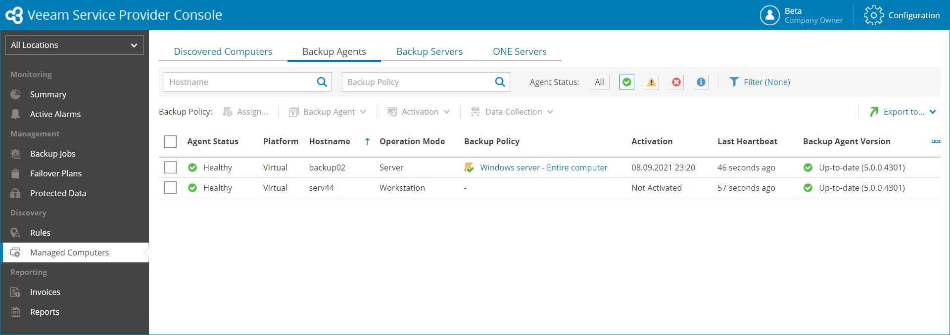 Otherwise, you can sort Veeam backup agents in the list by values in the Backup Agent Version column. For Veeam backup agents that can be updated, the column displays the Update available value.