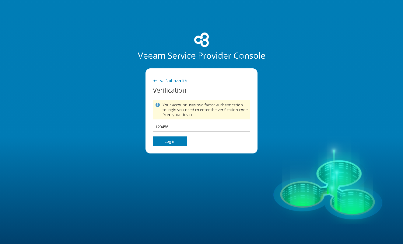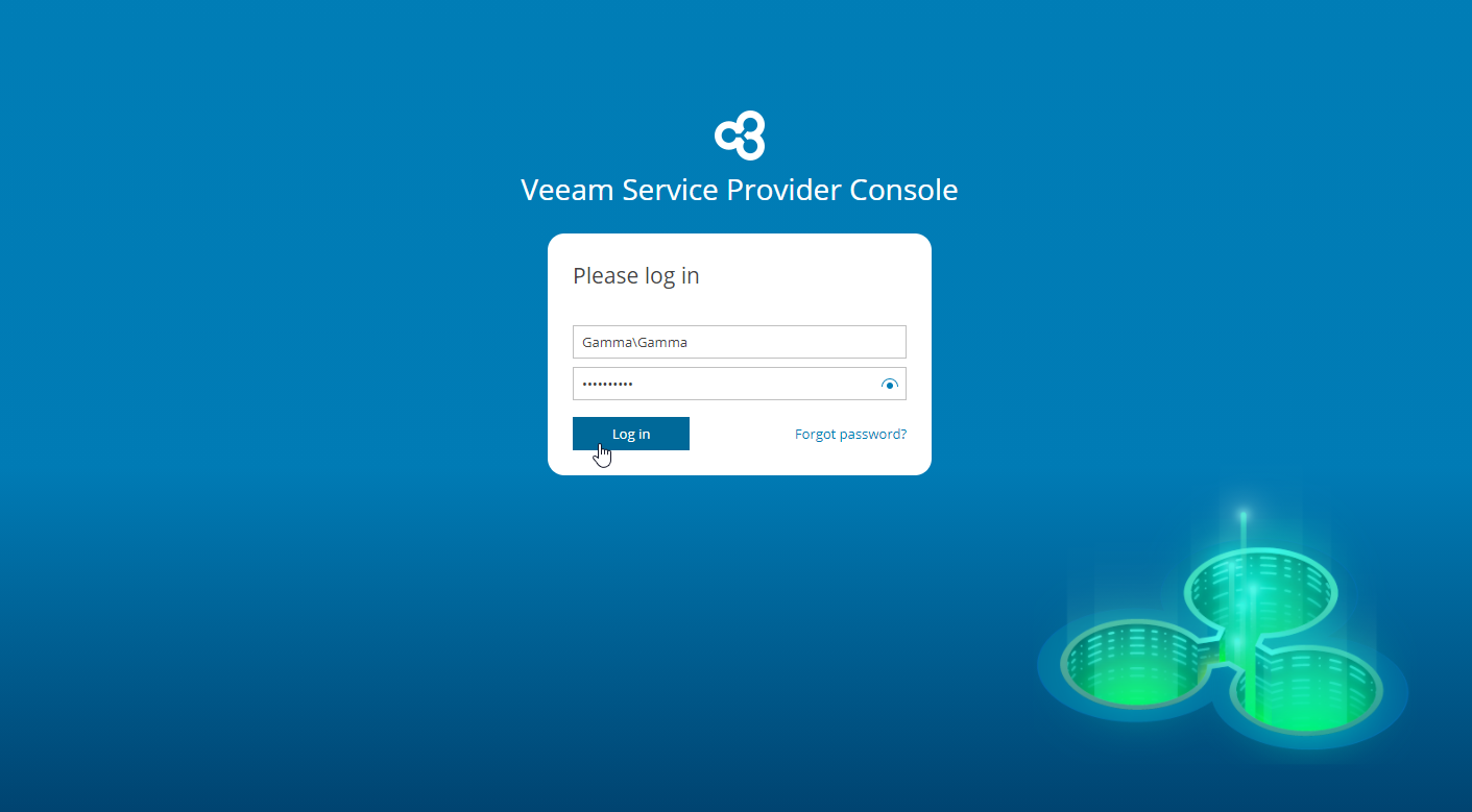 - In a web browser, navigate to the Veeam Service Provider Console URL. Note that Veeam Service Provider Console is available over HTTPS.