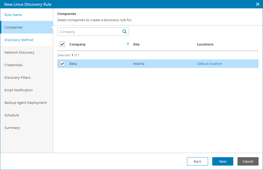 You can select more than one company at this step. In this case, after you complete the wizard steps, Veeam Service Provider Console will create a separate discovery rule for each company.