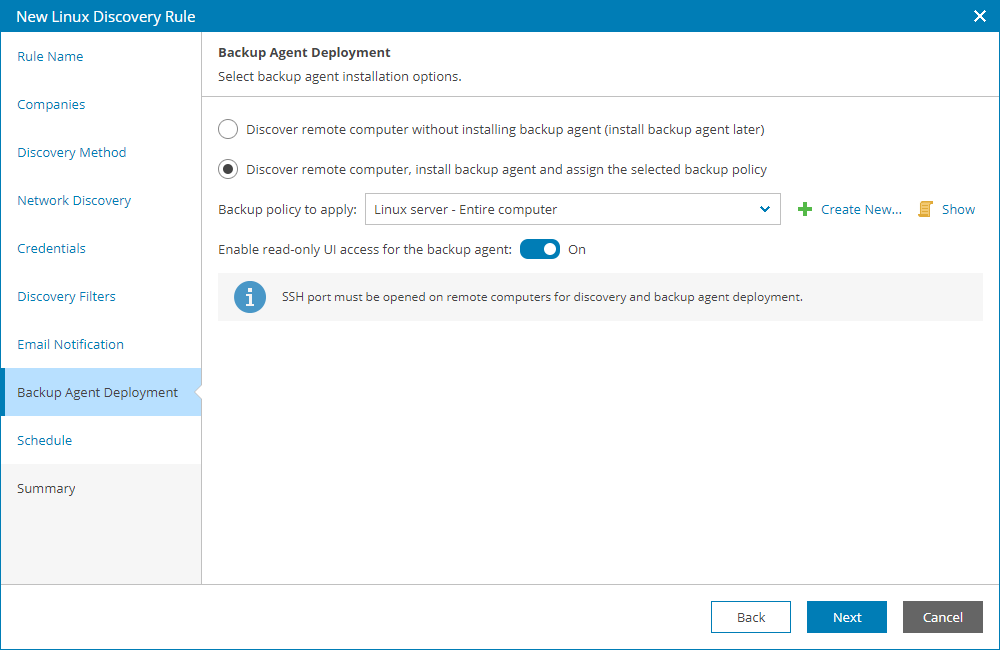 - If you plan to install Veeam backup agents as part of the discovery procedure, make sure that SSH port is opened on all client computers.