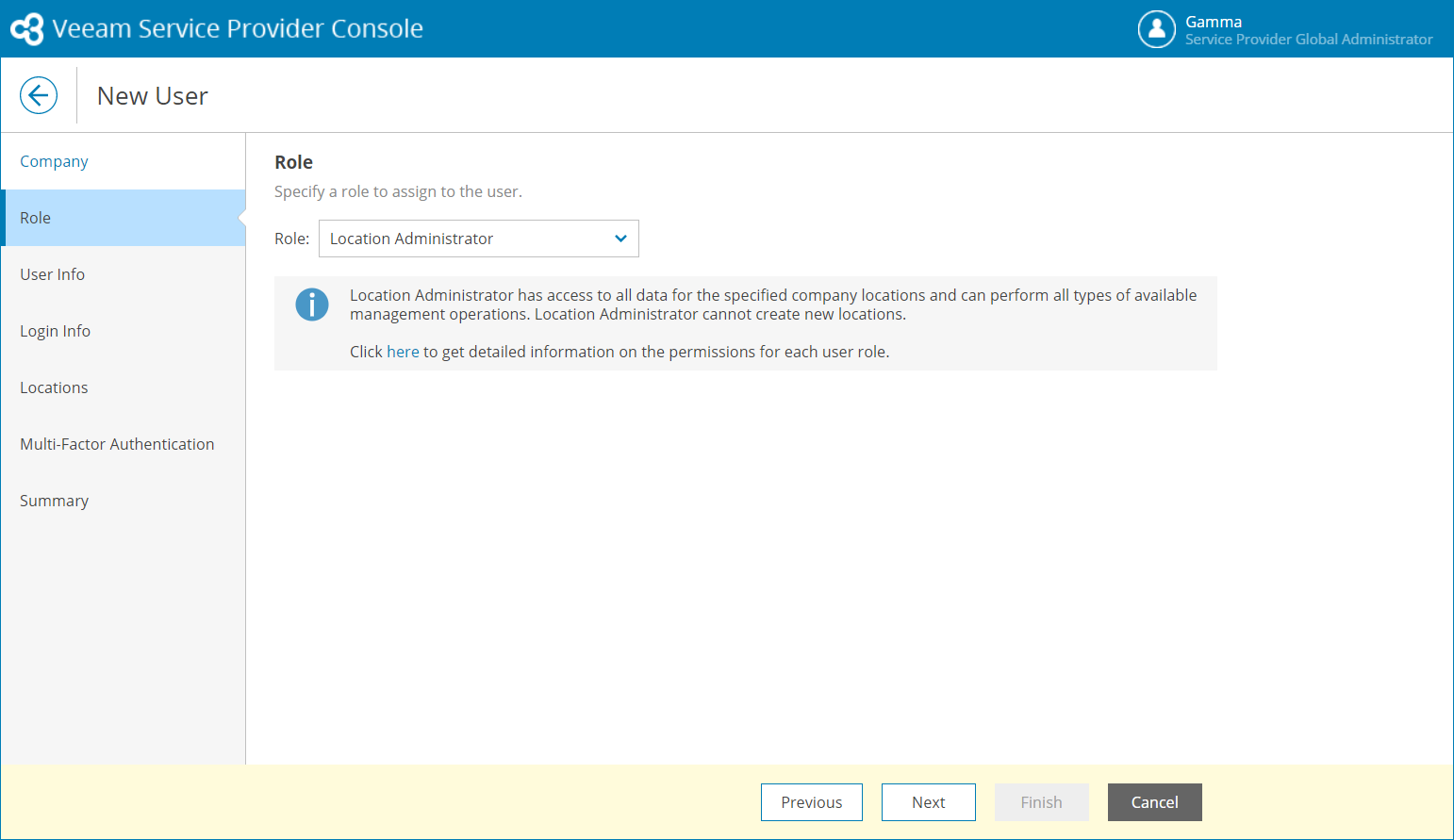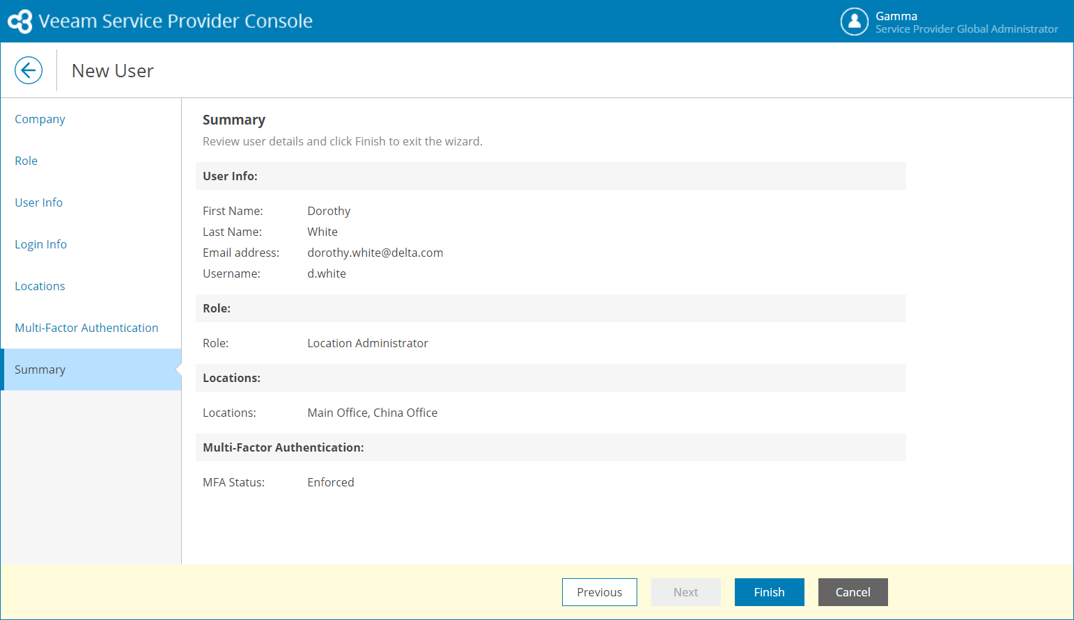 - At the Multi-Factor Authentication step of the wizard you can assign a second authentication factor to the new user. For details on MFA, see Configuring Multi-Factor Authentication.