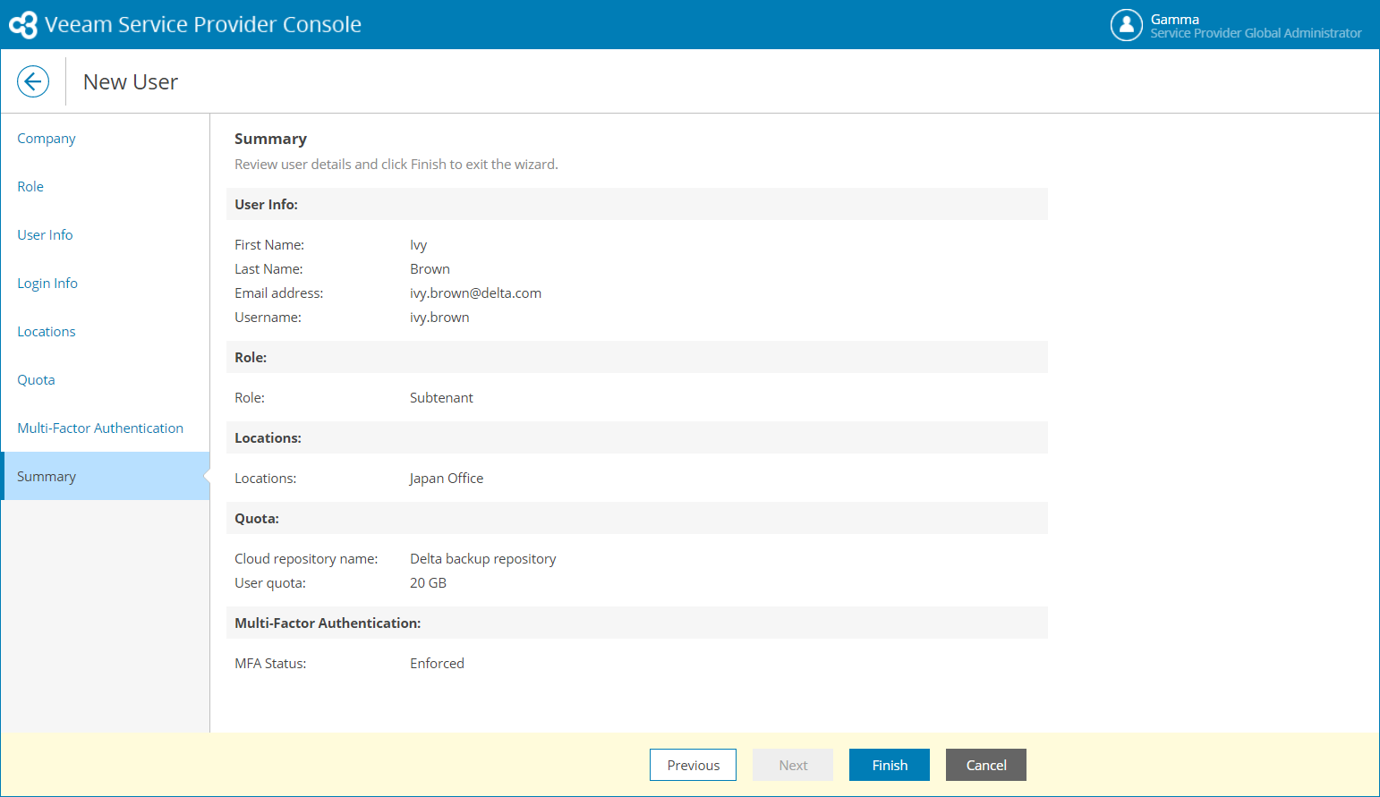 - At the Multi-Factor Authentication step of the wizard you can assign a second authentication factor to the user. For details on MFA, see Configuring Multi-Factor Authentication.