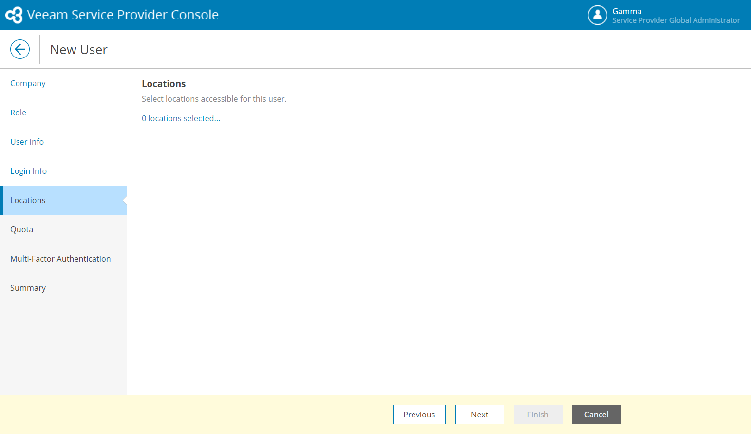 - At the Locations step of the wizard, click the 0 locations selected link.