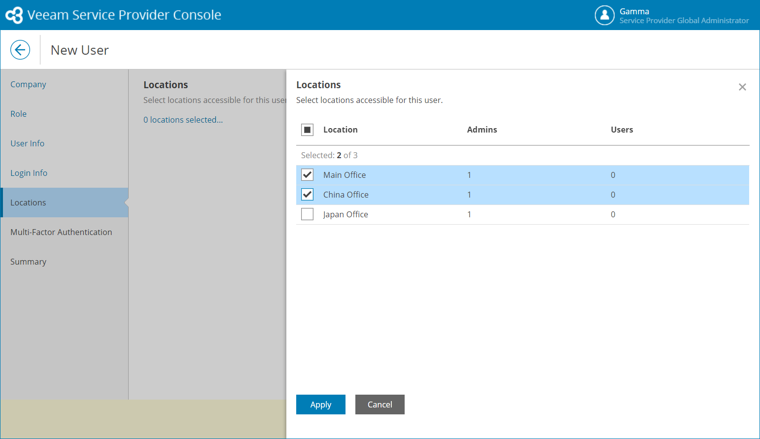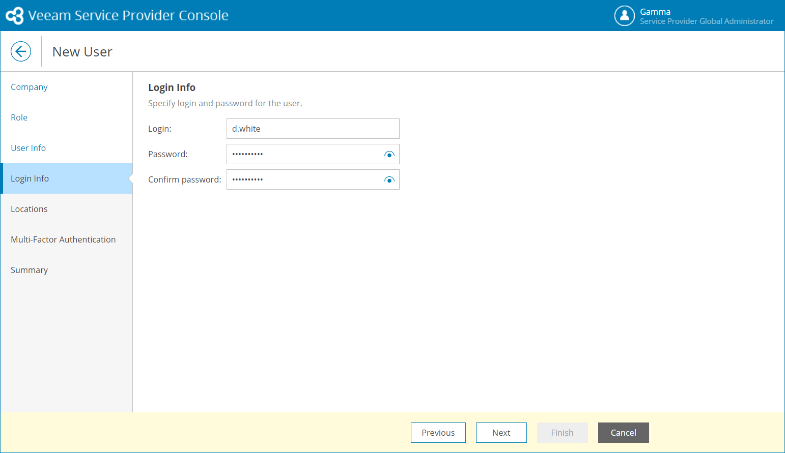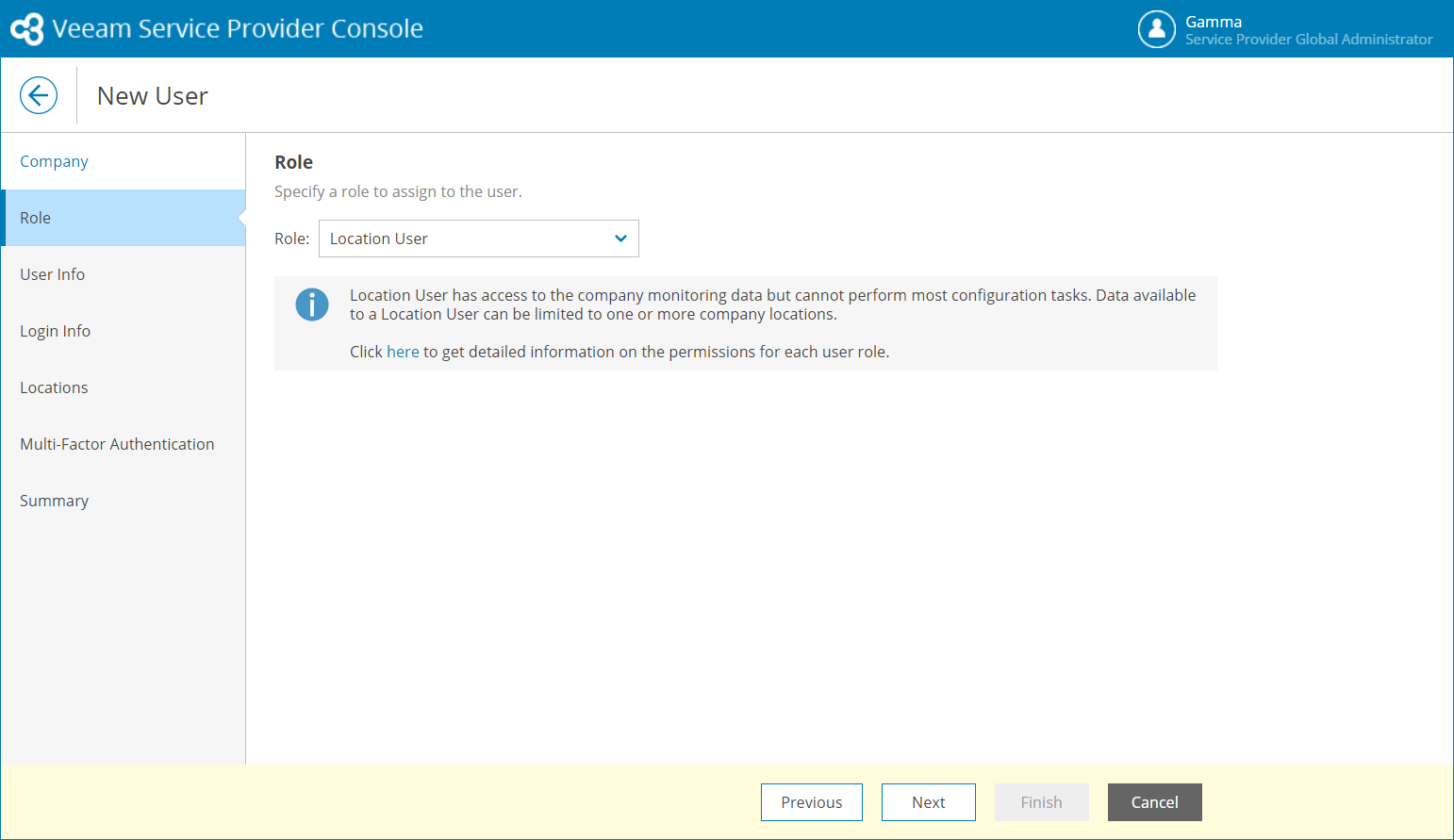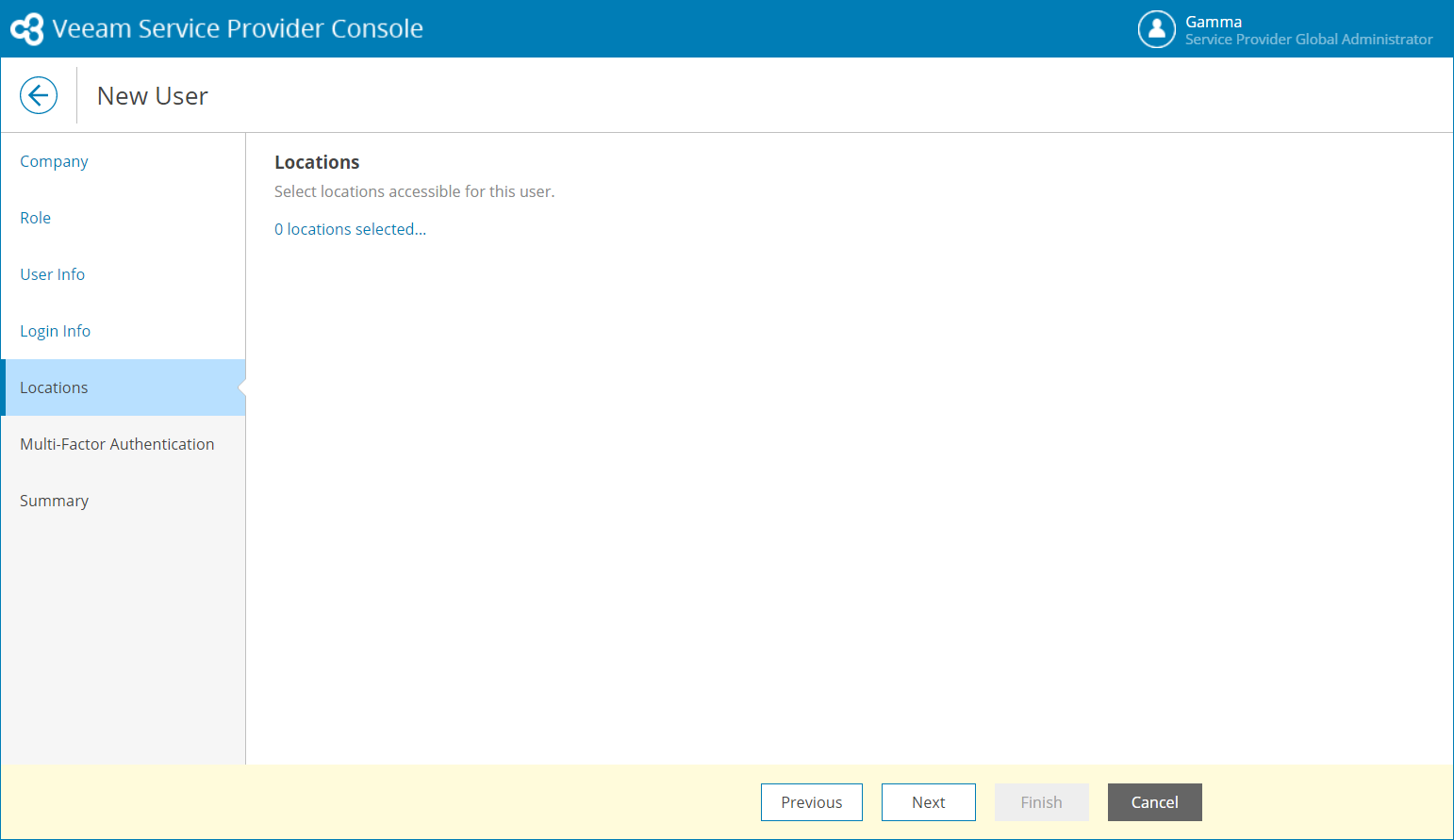 To create a new Location User in Veeam Service Provider Console: