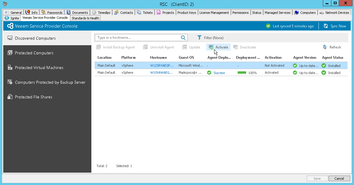 Veeam Service Provider Console will display the list of all computers managed by a mapped client in ConnectWise Automate.