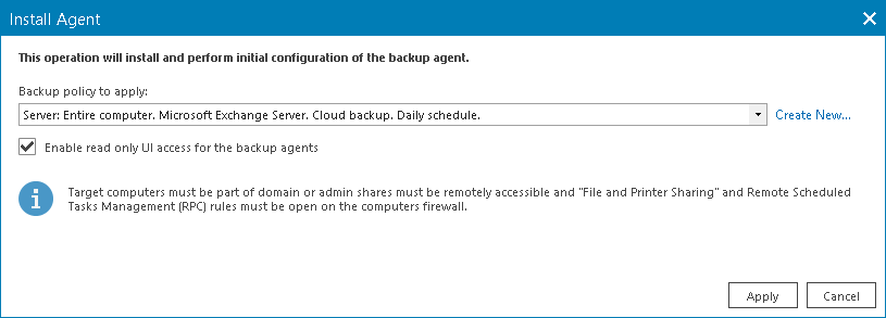 - By default, the read-only access mode is disabled for all Veeam backup agents. To enable the read-only access mode for Veeam backup agents, select the Enable read only UI access for the backup agent check box.