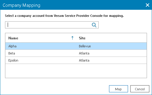 - In the Company Mapping window, select a Veeam Service Provider Console company which you want to map.