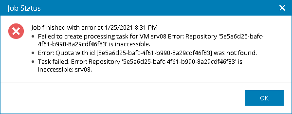 To get information on jobs that finished with errors and warnings, you can click the link in the job status. The Job Status window containing issue details will open.