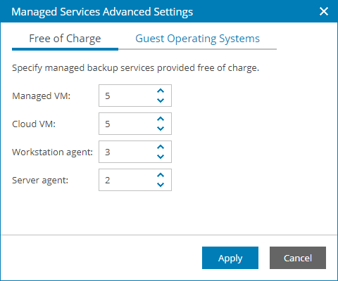 You can specify the number of VMs and Veeam backup agents that will be managed free of charge and additional charges for the guest OSes of computers that run Veeam backup agents: