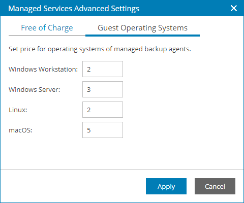 - On the Guest Operating Systems tab, specify extra charges for guest OSes of managed Veeam backup agents: