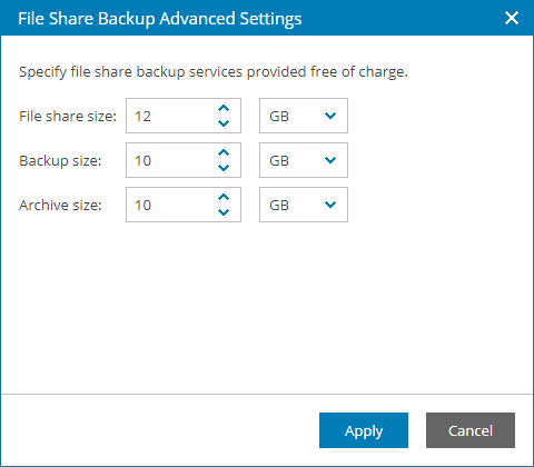 - In the Backup size field, specify how many GB or TB of file share backups will not be charged.