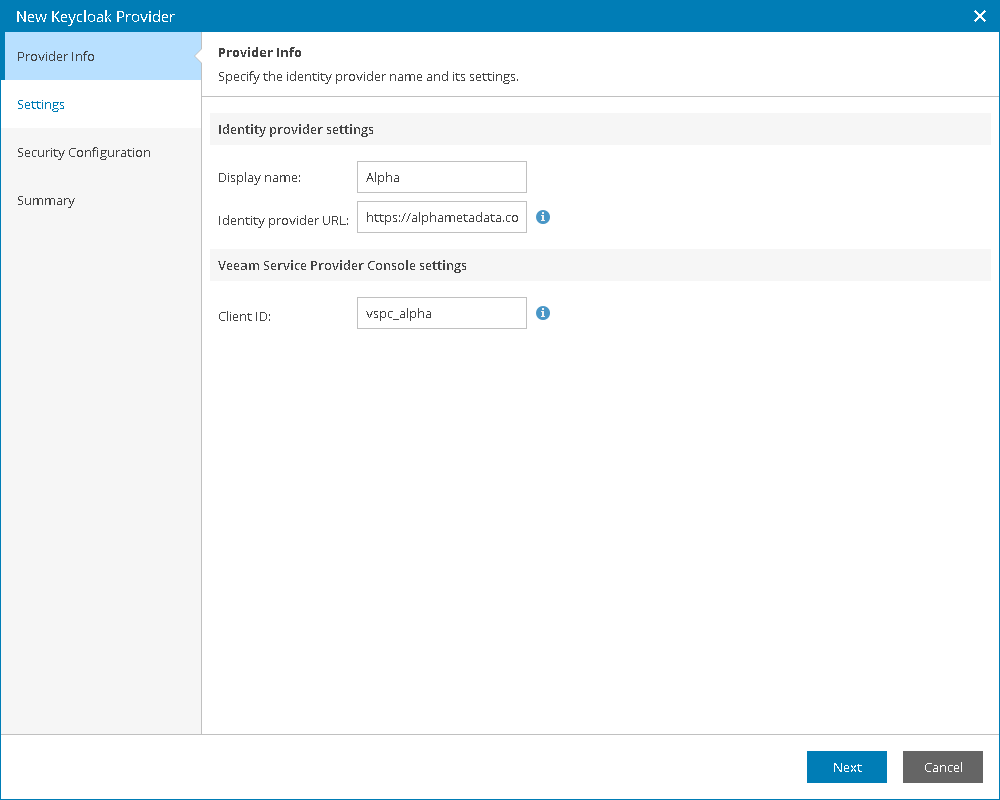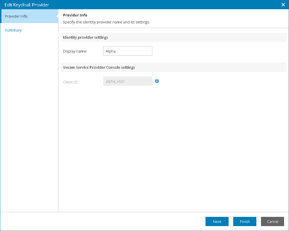 - In the Client ID field, specify the name of the client created for Veeam Service Provider Console on the IdP side.