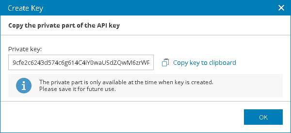 To configure Veeam Service Provider Console integration with third party solutions or Veeam Service Provider Console plugins, for example ConnectWise Automate, you must generate API keys. Veeam Service Provider Console uses API keys to authenticate requests from third party solutions to Veeam Service Provider Console server.