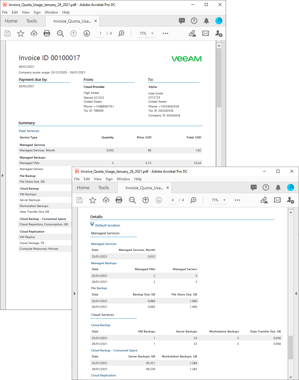 - Details — information about services consumed by each company location on each day of the quota usage period.