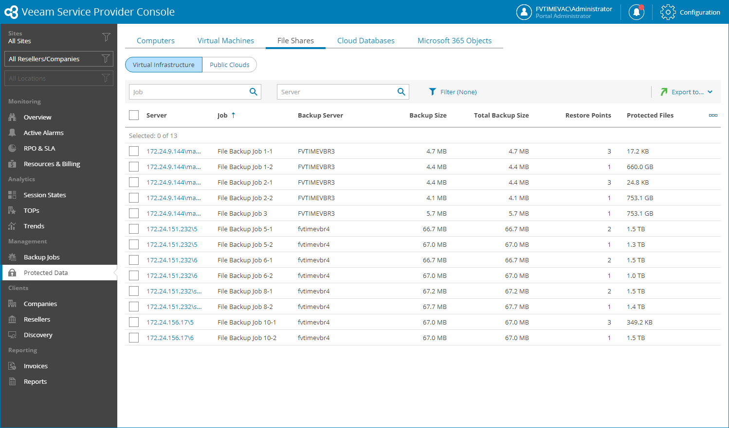 Veeam Service Provider Console will display a list of all file share servers protected by Veeam Backup & Replication.