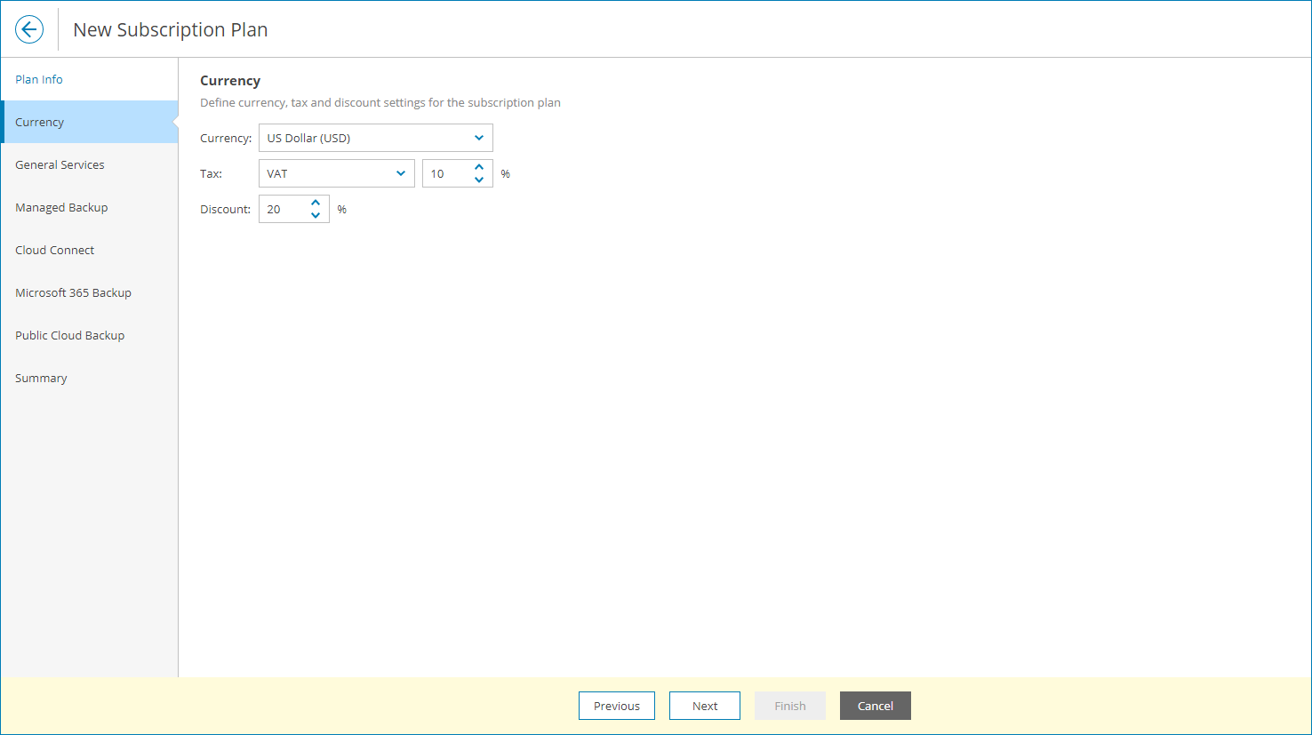 2. From the Tax list, select a type of tax (VAT, GST, Sales Tax) and specify a tax rate.